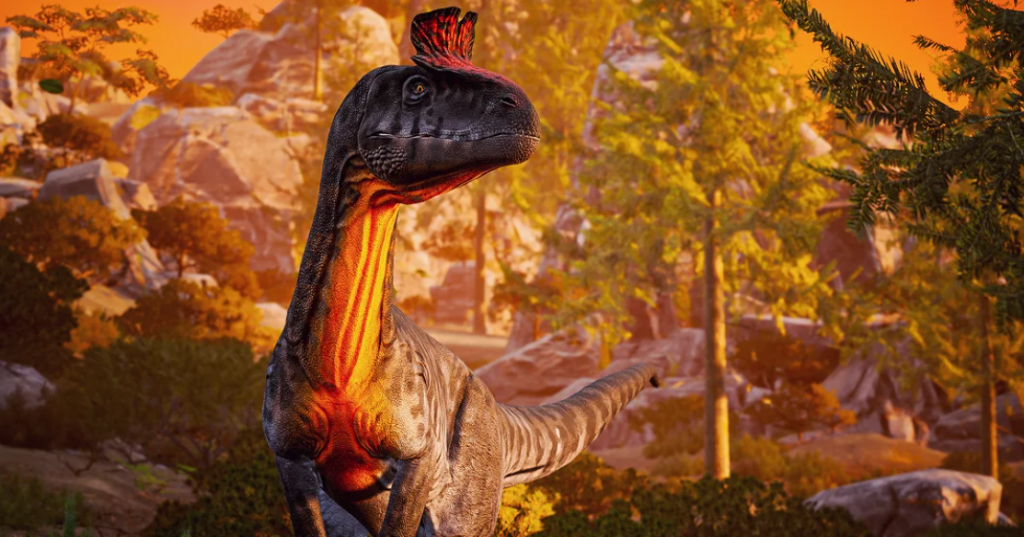 Cryolophosaurus was a large, slender-built, crested theropod, measuring approximately 6 to 7.7 meters (20 to 25 feet) in length and weighing between 465 and 780 kilograms (1,025 to 1,720 lbs), making it a top predator of the Early Jurassic in Antarctica. Known as one of the earliest large carnivores, its skull was roughly 65 cm long and featured a distinct, fan-shaped “pompadour” crest.