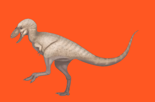Nanotyrannus was a small, fast tyrannosauroid that lived in North America during the Late Cretaceous period, approximately 66 million years ago. It had a large head, long hind legs, and long arms with large hands and claws. While it was once debated if it was a juvenile Tyrannosaurus rex, it is now considered a distinct and valid genus.